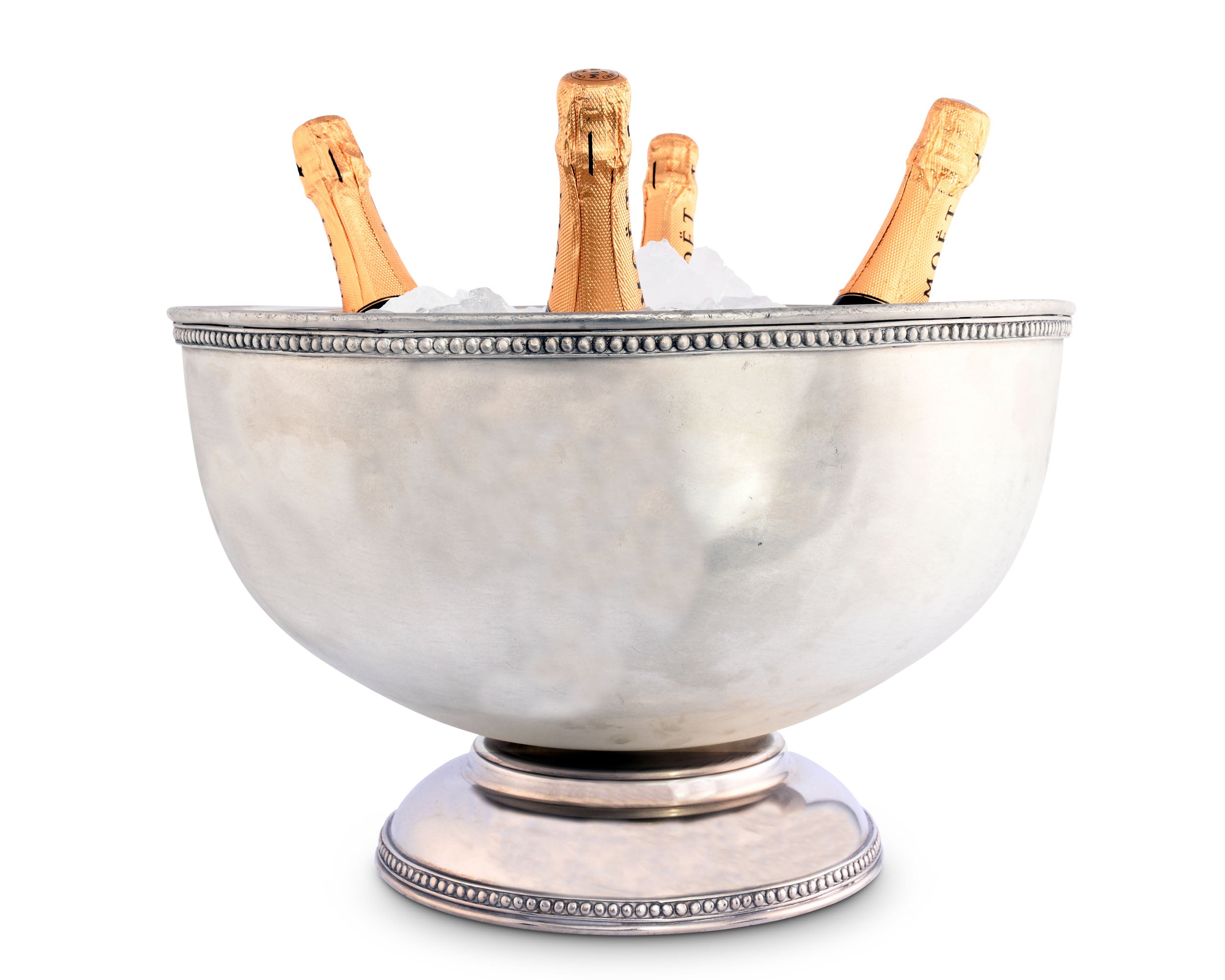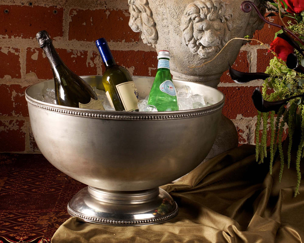 Solid luxury grade pewter is classically styled to create Vagabond House's Medici Beaded Ice Tub/Punch bowl. Our Medici Collection signature beading rings the top and bottom of the tub.