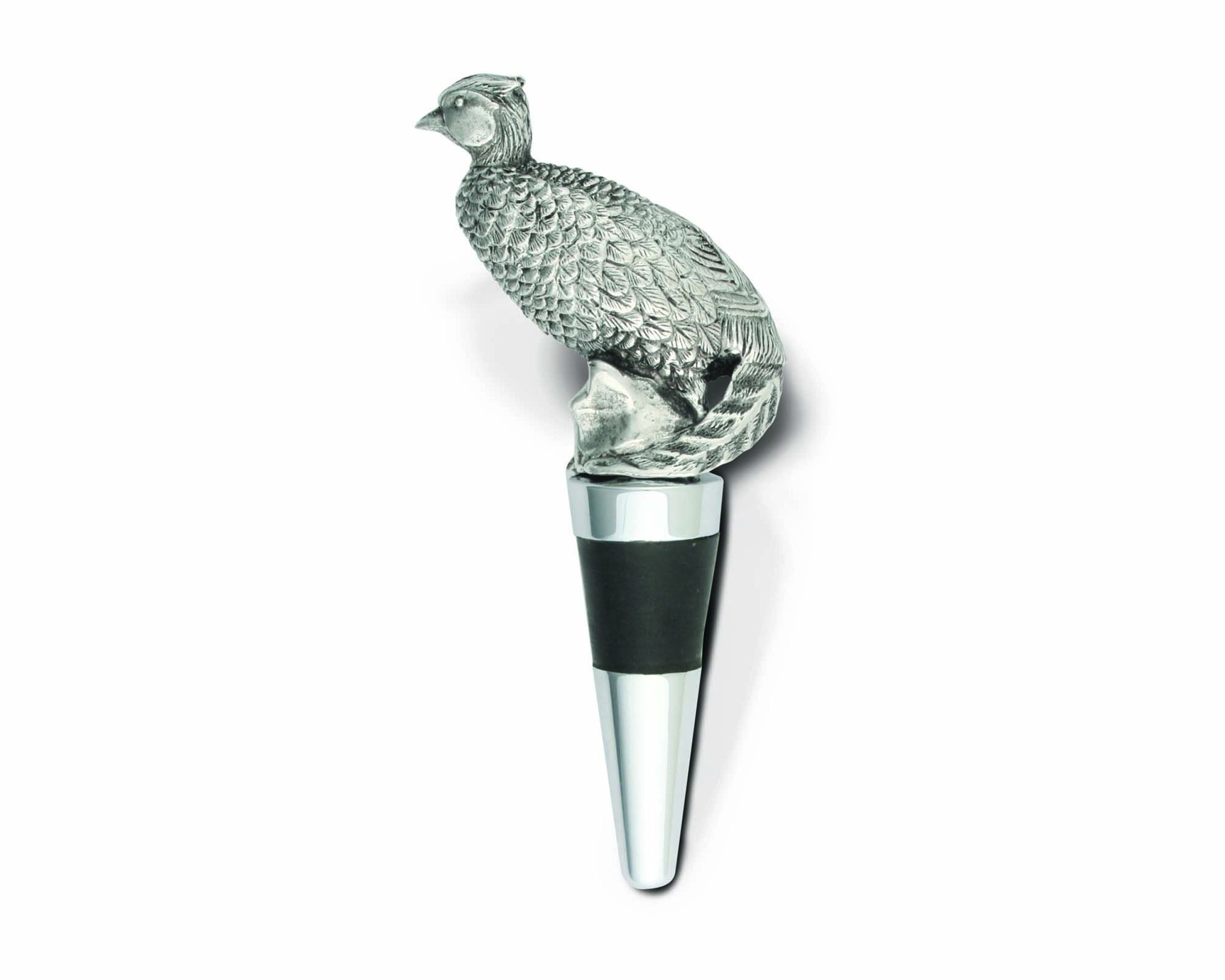 A pure Vagabond House pewter pheasant hen perches atop our bottle stopper. Captivating detail and accurate design down to the curve of her tail feathers, our pheasant figural collection is uniquely Vagabond House.