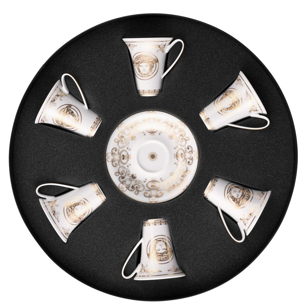 Versace Medusa Gala Gold AD Cup & Saucer Set Six Rount Hat Box